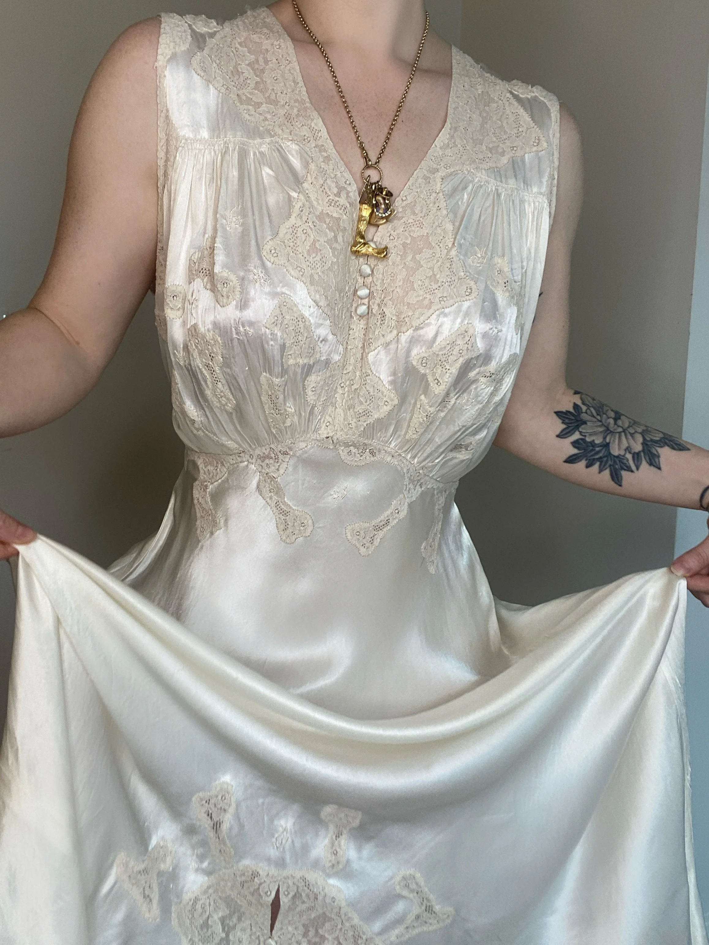 Categories: All New Arrivals Dresses Tops Jewelry Bridal 1930's Ivory Bridal Gown with Lace $528.00 1990's Feather Robe $168.00 Sold out 1910's Edwardian Cotton Fit and Flare Dress $428.00 Sold out Edwardian Cotton and Lace Dress $398.00 1920's Silk Butterfly Embroidered Robe $628.00 1920's Peach Silk Dress and Bed Jacket $398.00 Sold out 1940's Pink Silk Long Sleeve Robe $698.00 1920's Ivory Slip $398.00 Sold out 1940's Ivory Cap Sleeve Gown $528.00 Sold out 1940's Minty-Ivory Wrap Dress with Satin Bow $628.00 Sold out 1930's Ivory Silk Bridal Gown Set $858.00 Sold out 1980's Long Sleeve Cream Silk Bridal Gown $658.00 1930's Peachy Silk Dress $298.00 Sold out 1940's Long Sleeve Pink Dress $498.00 1920's Sheer Pink Silk Gown with Bows $498.00 Sold out 1930's Pale Pink Silk Bib Dress $498.00 1920's Pink Silk Set $550.00 Sold out 1930's Ivory Silk Gown $498.00 Sold out 1980's Pink Ostrich Feather Robe $598.00 1940's White Silk Bridal Dress $528.00 Sold out 1920's Pink Silk Shorts $178.00 1940's Pink Silk Gown with Bows $598.00 1920's Pink Silk Set $628.00 1930's Lace Gown $498.00 Sold out 1930's Embroidered Peach Gown $398.00 1930's Peach Silk Gown $528.00 Sold out 1980's Bridal Dress Set with Statement Bow $528.00 Sold out 1930's Pink Silk and Lace Gown $428.00 1930's Liquid Silk Pink Gown $358.00 Sold out 1940's Lace and Raw Silk Dress $228.00 1930's Ivory and Lace Bridal Dress $428.00 Sold out 1920's Liquid Silk Dress $528.00 Sold out 1930's Gold Silk Gown with Lace Keyhole $428.00 Sold out 1930's Pink Silk Gown with Beige Embroidery $528.00 1930's Peach Silk Gown $498.00 Sold out 1940's White Lace Dress $198.00 Sold out 1930's Light Pink Gown $428.00 1930's Silk Dress with Peter Pan Collar $428.00 1930's Silk Dress with Bows $528.00 Sold out 1930's Pink Silk and Lace Gown $428.00 Sold out 1920's Cream Silk Set $658.00 Sold out 1930's Ivory Lace Dress $428.00 Sold out 1930's Silk Lace Bed Jacket $178.00 1930's Pink Silk and Lace Dress $298.00 Sold out 1980's Donna Richard Satin Dress $178.00 Sold out 1930's Bridal Dress $428.00 Sold out 1930's Pink Silk Top $178.00 Sold out 1930's Pink Pajama Set $358.00 1930's Pink Floral Two-Piece Dress Set $428.00 1930's Peach Silk Dress with Peter Pan Collar $528.00 Sold out 1930's Ivory Silk Long Sleeve Wedding Dress $658.00 Sold out 1930's Peachy Pink Silk Maxi $528.00 Sold out 1930's Pink Silk and Lace Dress $428.00 Sold out 1930's Silk Peach Maxi $428.00 1930's Beige Silk Bed Jacket $178.00 1930's Silk Pink Bow Dress $398.00